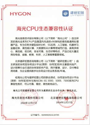 我司二三维一体化协同设计平台成功通过华为鲲CPU,海光CPU,麒麟操作系统、统信操作系统、人大金仓数据库、东方通中间件等兼容性与信创适配认证。